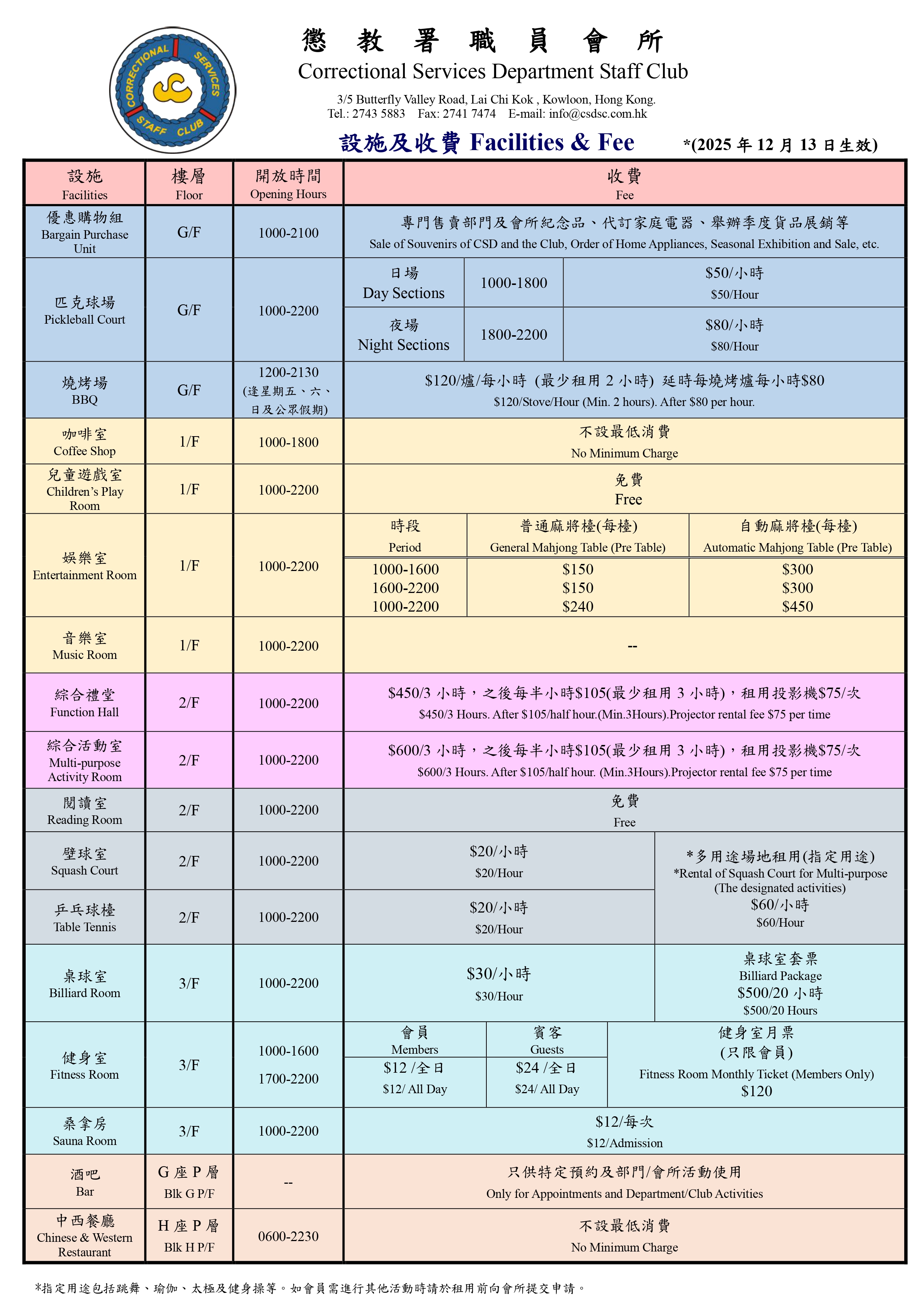 桌球室 桑拿浴室